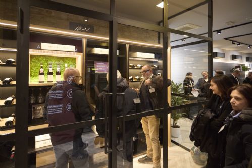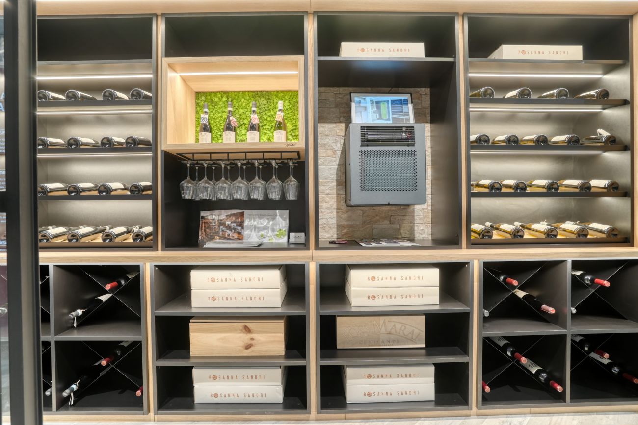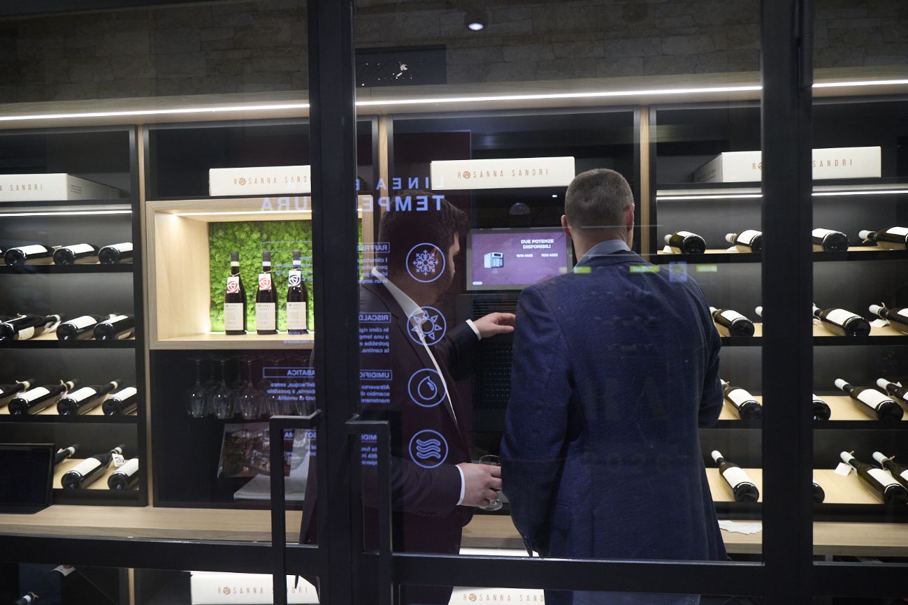 Qui è possibile toccare con mano un esempio di arredo portabottiglie Winest e gli impianti ad esso dedicati: