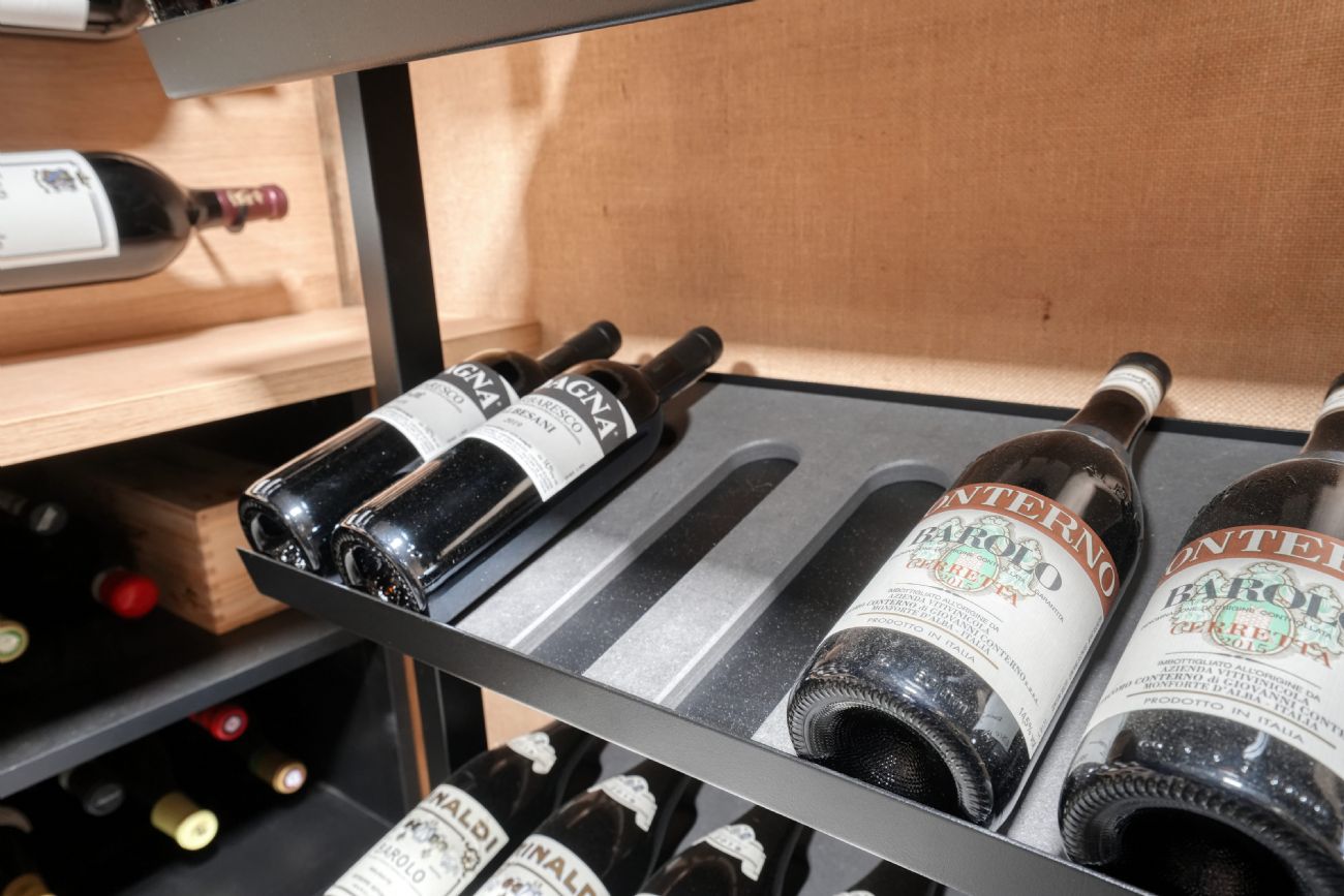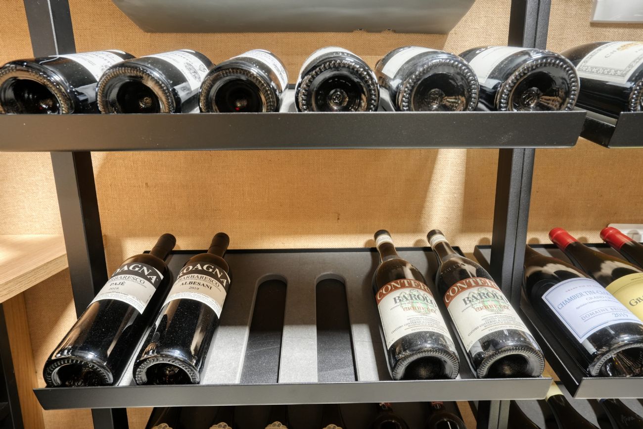 In this project, located in the heart of Milan, we transformed a top-floor penthouse into an elegant space dedicated to wine storage and display.