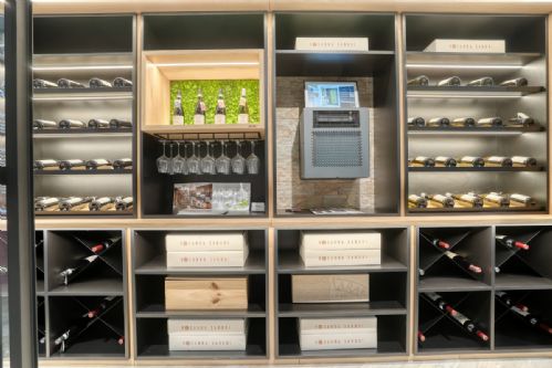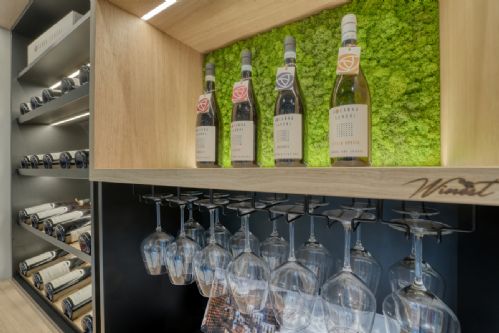 Qui è possibile toccare con mano un esempio di arredo portabottiglie Winest e gli impianti ad esso dedicati:
